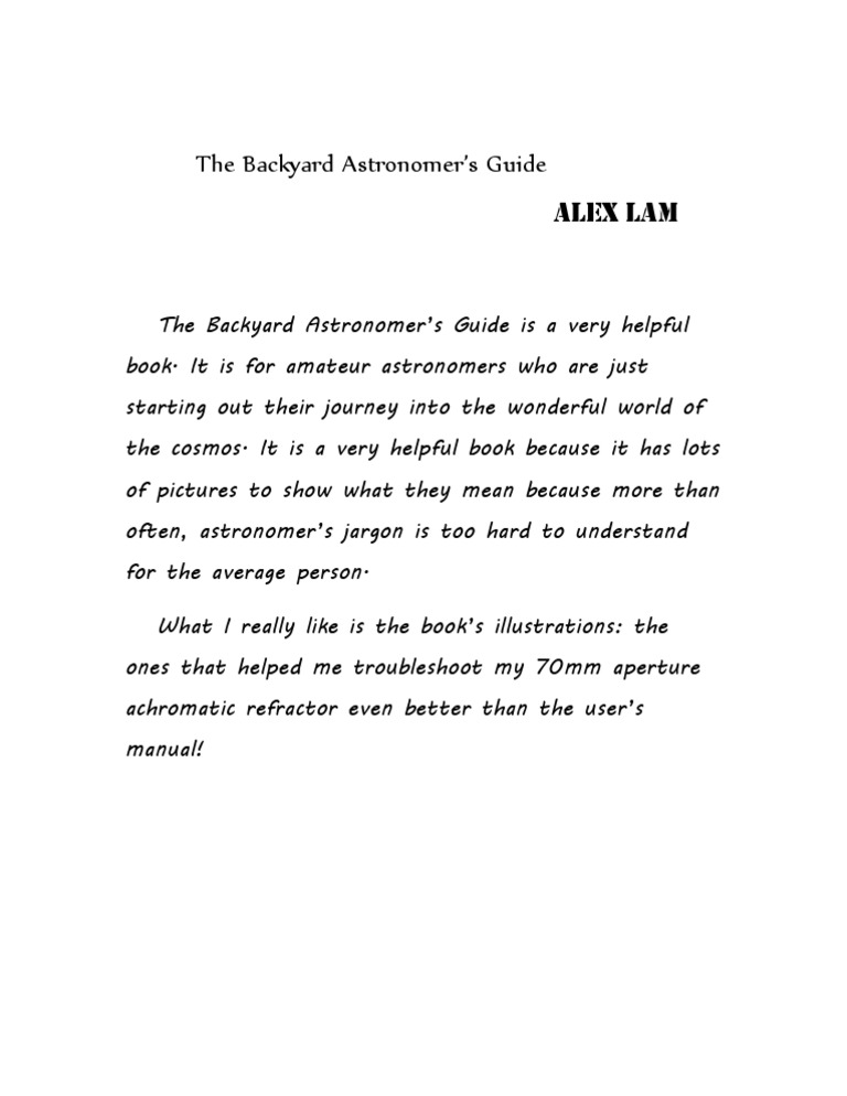 It is for amateur astronomers who are just starting out their journey into the wonderful world of the cosmos. Backyard astronomers guide is a great investment to make before you start to spend serious money. The peterson first guide to astronomy. So pm asked several accomplished astronomers about the best way to start stargazing. In the backyard astronomer's guide, authors terence dickerson, and alan dyer take the same approach as nightwatch but go several steps further.